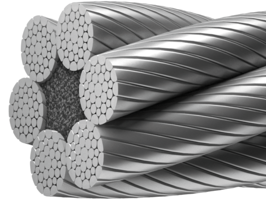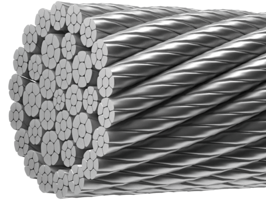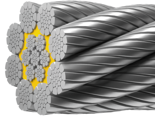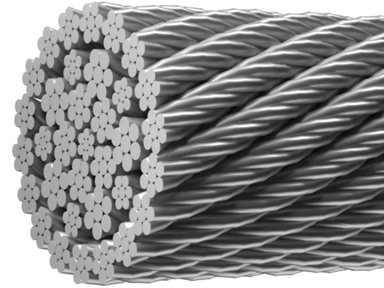 High flexibility, reduced friction between outer wires in strands and pulley groove surface, rotation resistance